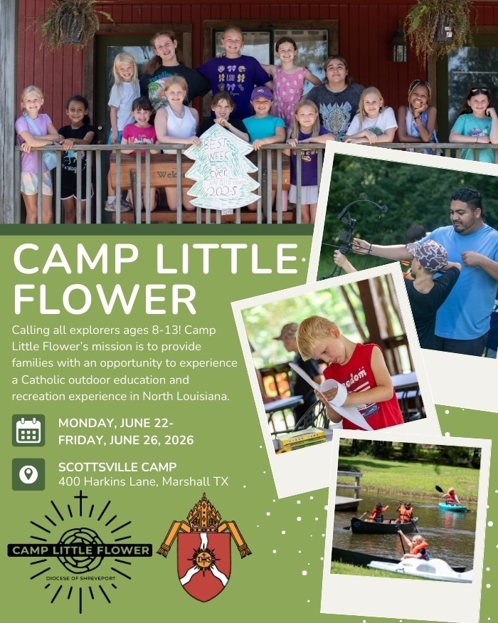 Camp Little Flower offers young people a wonderful chance to grow in their faith while enjoying the beauty of the great outdoors. This diocesan camp provides a unique blend of Catholic outdoor education and recreation in a welcoming, Christ-centered environment.