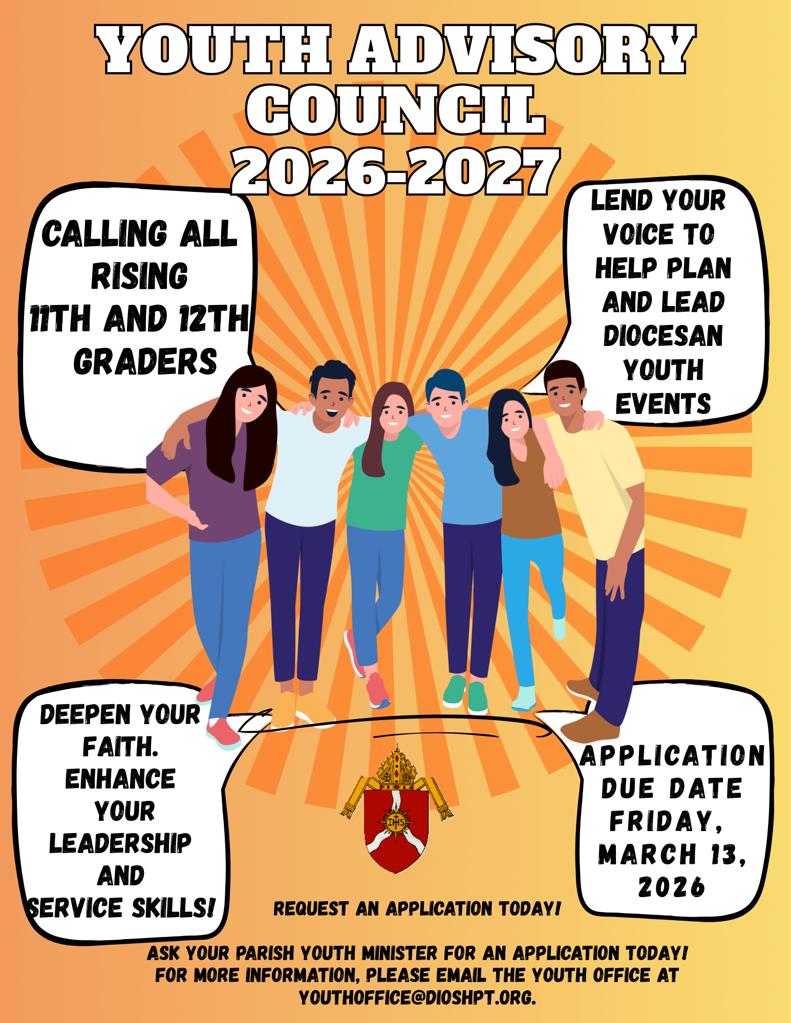 The Office of Youth Ministry empowers young people to grow in faith, leadership, and service within the Church. Partnering with parishes and schools, we provide guidance, training, and events that help teens encounter Christ, build community, and discover their unique gifts. We seek to form joyful missionary disciples who live their Catholic faith with courage and conviction.